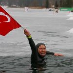 Százhúsz métert úszott egyetlen levegővétellel vastag jégpáncél alatt egy török nő pénteken, amivel megdöntötte a kategória Guinness-rekordját.