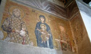 Kép illusztráció: II. János bizánci császár és Piroska – Mozaik a Hagia Sophia-székesegyházban.