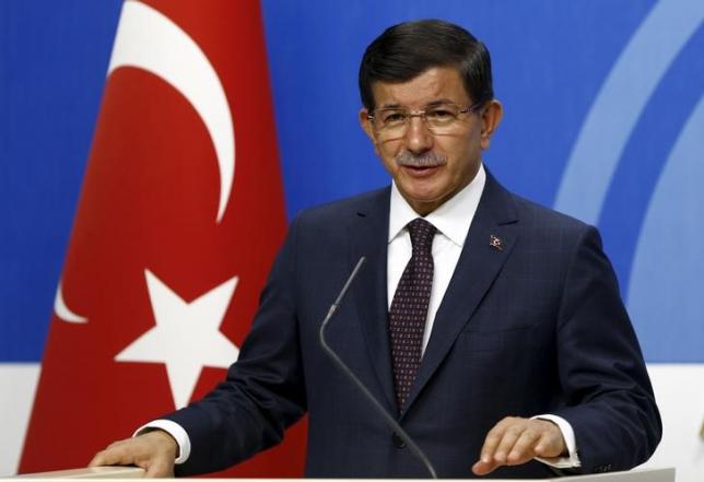 Turkey’s Prime Minister Ahmet Davutoglu speaks during a news conference at his ruling AK Party in Ankara